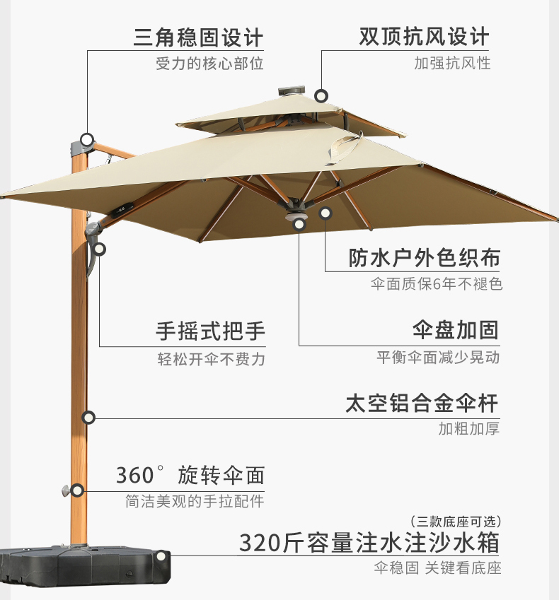 斯肯特遮陽傘(木紋色立柱)